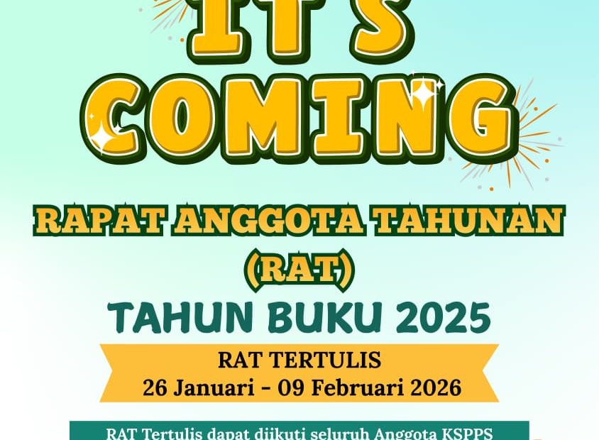 Sehubungan dengan diadakannya Rapat Anggota Tahunan (RAT) Tahun Buku 2025 maka kami selaku panitia RAT bermaksud menyampaikan Laporan Pertanggungjawaban Pengurus, Pengawas, DPS Tahun 2025 serta Program Kerja Tahun 2026